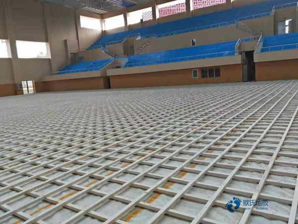 彈性墊塊作為該種結構體育木地板的重要組成部件,對體育木地板整體結構具有良好的彈性起重要作用。(見圖1-圖1-圖1-圖1-圖1-8和圖1-9)。雙層結構體育木地板現在已廣泛應用于我國的籃球場館、羽毛球館、排球館等專業比賽體育場館。該結構性能好,造價高,生產、安裝工藝復雜,對環境的溫濕度要求高,歐氏運動木地板研發的雙層龍骨結構已鋪裝到2008北京籃球比賽場館。很多大學、社區和企的專業體育場館都采用此種結構型式的體育木地板。雙層結構體育木地板是一種基本滿足競技體育比賽的高品質專業體育木地板,也是目前國內外應用較為廣泛的一種結構型式,其結構的性能指標可達到1標準要求。主要應用于2000m2~3000m2的中型體育館。